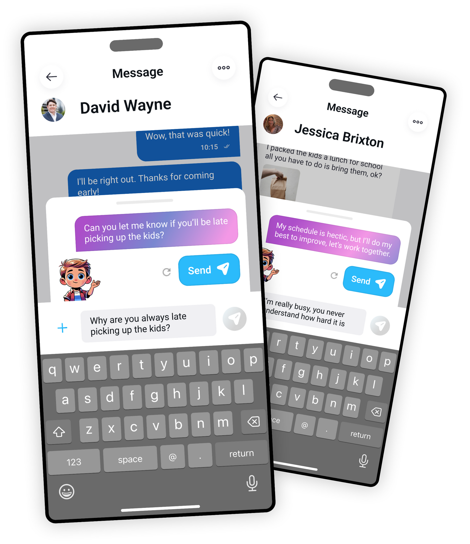 With real-time AI, texting with Kidplomat between co-parents becomes seamless, ensuring every exchange benefits your children and is stress-free